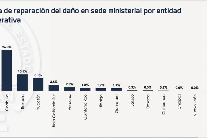 NOTICIAS 09/10/2022FGE Michoacán, segundo lugar en cumplimento de acuerdos reparatoriosDurante el 2021, en Michoacán se cumplió con el 99.8 por ciento de los acuerdos reparatorios signados en sede ministerial, lo que pone a la entidad en el segundo lugar del ranking nacional, de acuerdo al estudio de Seguimiento y Evaluación del Sistema de Justicia Penal en México, Hallazgos 2021, realizado por la organización México Evalúa.