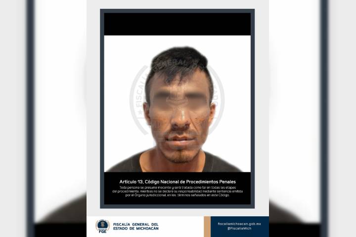 En el marco del operativo "Fuerza de Tarea para la Cumplimentación de Órdenes de Aprehensión", la Fiscalía General del Estado de Michoacán (FGE), en coordinación con la Secretaría de Seguridad Pública (SSP), detuvo a Juan Carlos "N", presunto responsable del secuestro y homicidio de un hombre.