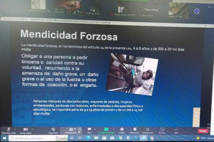 NOTICIAS 26/07/2022Imparte FiscalÃa General capacitación en materia de Trata de PersonasAtendiendo al compromiso interinstitucional de implementar acciones coordinadas para hacer frente al delito de Trata de Personas en sus diversas modalidades, la FiscalÃa General del Estado de Michoacán (FGE) a través de la FiscalÃa Especializada en Materia de Derechos Humanos y Libertad de Expresión, brindó una capacitación en este rubro a policÃas de 24 municipios de la entidad.