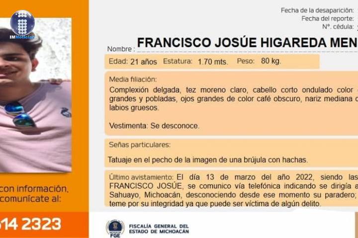 NOTICIAS 18/03/2022Fiscalía busca a jóvenes sahuayenses.La Fiscalía General del Estado de Michoacán (FGE) continua con las investigaciones pertinentes que lleven a la localización de una pareja de jóvenes, que el pasado lunes 14 de marzo fueron reportados como desaparecidos en el municipio de Sahuayo.