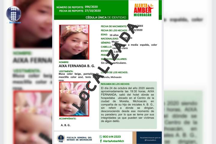 NOTICIAS 25/11/2021Localiza Fiscalía General a madre e hijo que fueron reportados como desaparecidosLa Fiscalía General del Estado de Michoacán (FGE), localizó a una adolescente y a su hijo menor de edad, que fueron reportados como desaparecidos, en esta ciudad de Morelia.