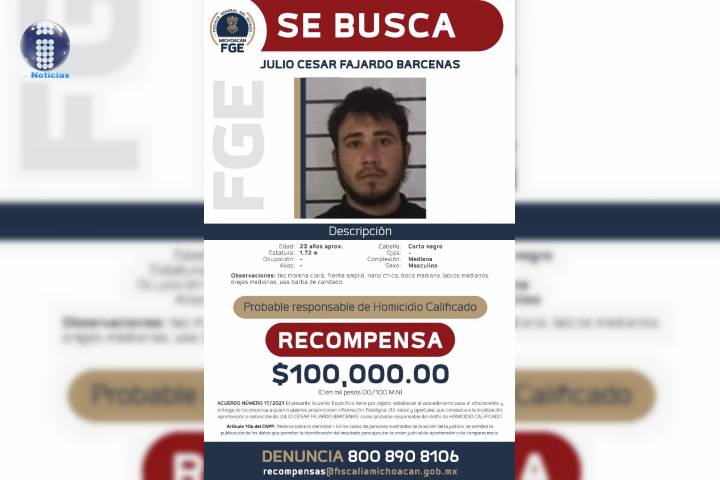 La Fiscalía General del Estado de Michoacán (FGE) expidió los acuerdos por el que se emite el Ofrecimiento y Entrega de Recompensa para quienes aporten información fidedigna, útil y oportuna que conduzca a la localización de Julio Cesar Fajardo Barcenas y José Herrera Nolasco (El Barquillo) probables responsables del delito de Homicidio Calificado, ocurrido en Tarecuato, municipio de Tangamandapio el pasado 11 de noviembre. Derivado de ...