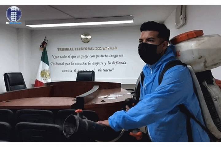 Este jueves se realizó una jornada más de sanitización de las oficinas que albergan el Tribunal Electoral del Estado de Michoacán (TEEM).