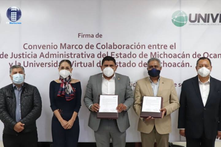 NOTICIAS 23/09/2020Firma TJAM convenio con UNIVIMPara continuar con su proceso de profesionalización permanente, el Tribunal de Justicia Administrativa del Estado de Michoacán (TJAM) firmó hoy un convenio de colaboración con la Universidad Virtual del Estado de Michoacán (UNIVIM).