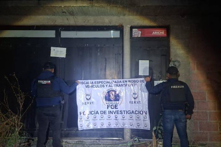 La Fiscalía General del Estado de Michoacán (FGE), a través de la Fiscalía Especializada en Robo de Vehículos y al Transporte, ejecutó una orden de cateo en un inmueble ubicado en la colonia Barrio de los Cerritos, en este municipio, acción que permitió asegurar vehículos, cartuchos útiles y diversas sustancias con características de narcótico. La diligencia fue realizada en cumplimiento de una orden de cateo otorgada por un Juez d...