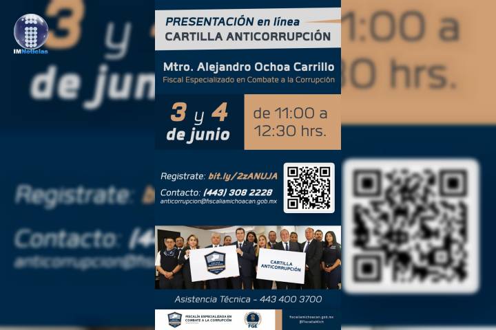 NOTICIAS 02/06/2020Presentará FECC, Cartilla AnticorrupciónCon el objetivo de fortalecer los canales de comunicación entre las instituciones, y reforzar el vÃnculo de confianza hacia la ciudadanÃa, en materia de combate a los delitos de corrupción, este 3 y 4 de junio, se presentará la Cartilla Anticorrupción, a través de la cual las y los michoacanos podrán conocer las estrategias emprendidas para combatir y prevenir este tipo de delitos.
