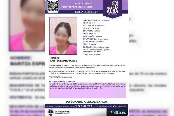 Familiares identificaron el cadáver de la joven mujer encontrada asesinada, en un tambo de plástico dentro de un río al oriente de la ciudad de Uruapan; la víctima tenía 5 días desaparecida y contaba con ficha de búsqueda del protocolo Alerta Amber. Se trata de Maritza E., de 28 años de edad, quien fue vista por última vez con vida el pasado 24 de noviembre y por ello, familiares denunciaron los hechos ante la Fiscalía Regional, inst...