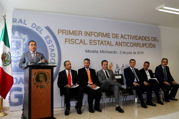 NOTICIAS 02/07/2019Fortalecer instituciones, principal reto para combatir impunidad: Fiscal General "Hoy la sociedad exige instituciones útiles, transparentes, que se sometan a un claro escrutinio público en la más abierta rendición de cuenta; y el contar con ellas, nos obliga a fortalecerlas", afirmó el titular de la Fiscalía General del Estado de Michoacán (FGE), Adrián López Solís, durante el primer informe de actividades del Fiscal Estatal Anticorrupción, Alejandro Carrillo Ochoa.