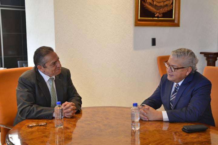 En aras de fortalecer la comunicación entre el Poder Judicial de Michoacán y la Secretaría de Finanzas de la entidad, los titulares de ambas instituciones, Héctor Octavio Morales Juárez y Carlos Maldonado Mendoza, respectivamente, sostuvieron un encuentro en el Palacio de Justicia José María Morelos.