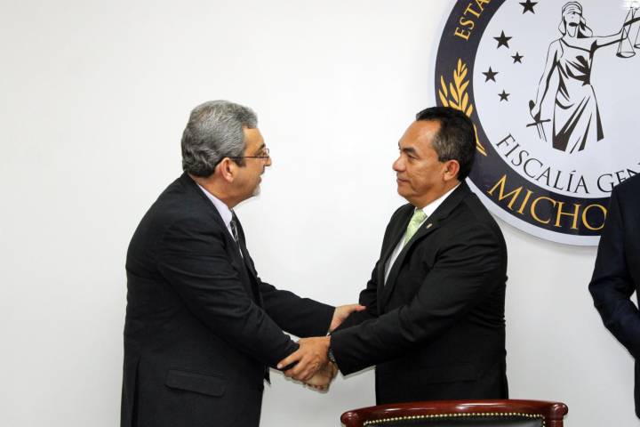 En apego a las disposiciones de la Ley Orgánica de la Administración Pública del Estado de Michoacán de Ocampo, el Fiscal General del Estado, Adrián López Solís, y el ex titular de la Procuraduría General de Justicia de Estado, José Martín Godoy Castro, celebraron este día la firma de acta de Entrega-Recepción de la institución.