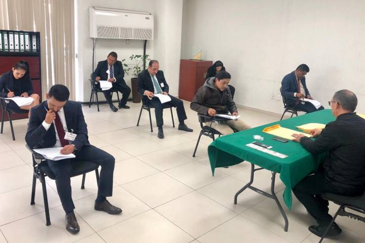 NOTICIAS 16/01/2019Aspirantes a Contralor interno del TJAM realizan examen de conocimientos En apego a la convocatoria del concurso de oposición para ocupar el cargo de Titular del Órgano Interno de Control, del Tribunal de Justicia Administrativa del Estado de Michoacán de Ocampo (TJAM), esta mañana los aspirantes se presentaron a realizar el examen escrito de conocimientos en diversos temas relacionados con el derecho administrativo.