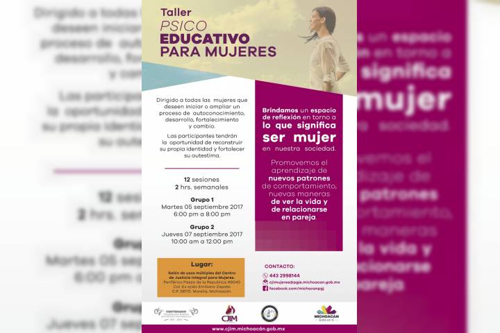 NOTICIAS 05/10/2017Imparte PGJE talleres de empoderamiento a mujeresEn el marco de los trabajos que se realizan para garantizar a las mujeres michoacanas una vida libre de violencia y su derecho de acceso a la justicia, la Procuraduría General de Justicia del Estado (PGJE), a través del Centro de Justicia Integral para las Mujeres (CJIM), lleva a cabo una serie de talleres enfocados a su empoderamiento