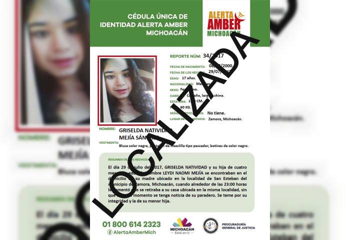 NOTICIAS 07/08/2017Localiza PGJE a adolescente e hija reportadas como desaparecidas en Zamora