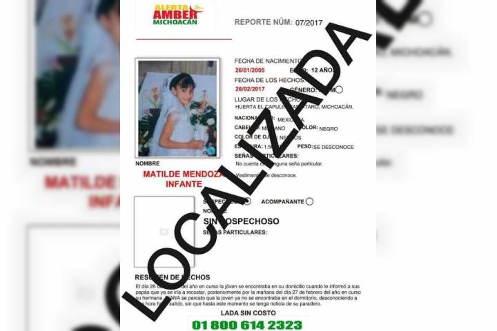 Derivado de trabajos de investigación, la Procuraduría General de Justicia del Estado (PGJE) de Michoacán, a través de la Fiscalía Especializada en Personas Desaparecidas, localizó a una menor de edad que el pasado 26 de febrero fue reportada desaparecida por sus familiares en el municipio de Tancítaro.