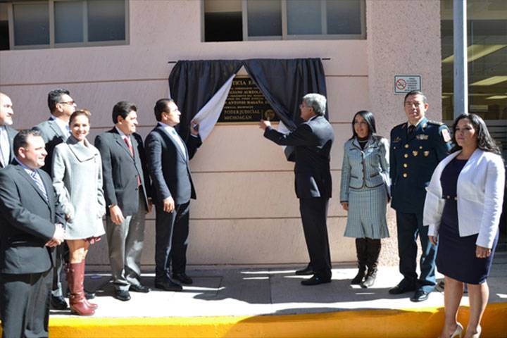 "Con la adecuación y equipamiento de un edificio destinado a la justicia familiar, así como el Salón de Usos Múltiples, el Poder Judicial continúa realizando acciones para la mejora continua del servicio de impartición de justicia", señaló Juan Antonio Magaña de la Mora, presidente del Supremo Tribunal de Justicia y del Consejo del Poder Judicial de Michoacán, al inaugurar y develar la placa del Edificio de Justicia Familiar.