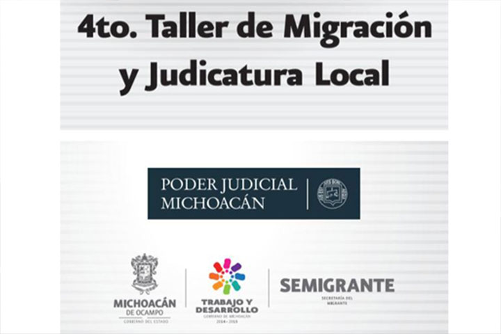 Con el objetivo de intercambiar experiencias y buenas prácticas de los servidores públicos que atienden asuntos jurÃdicos de la población migrante, este 25 y 26 de septiembre se lleva a cabo el 4° Taller de Migración y Judicatura Local, evento organizado por el Poder Judicial de Michoacán, la SecretarÃa del Migrante en el Estado y Jueces de Primera Instancia de Michoacán A.C.