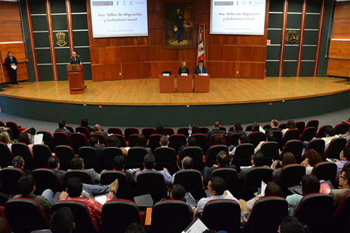 Con el objetivo de que los servidores públicos de las instituciones intervinientes en la realización de trámites legales en materia de migración, intercambien opiniones sobre los problemas más comunes a los que se enfrentan dÃa a dÃa en el desempeño de sus labores, se llevará a cabo el 4° Taller de Migración y Judicatura local, este 25 y 26 de septiembre en el Palacio de Justicia José MarÃa Morelos.