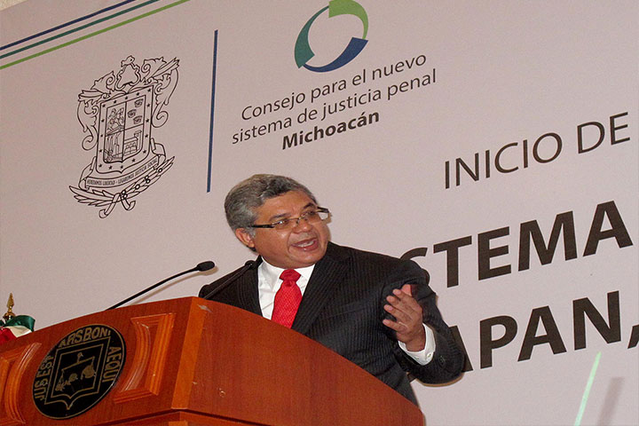 Los titulares de los Poderes Ejecutivo, Legislativo y Judicial, Salvador Jara Guerrero, Sarbelio Molina Vélez y Juan Antonio Magaña de la Mora, respectivamente, dieron el martillazo de inicio a la implementación del Nuevo Sistema de Justicia Penal que este lunes entra en vigor en Uruapan, región que integra a 18 municipios donde cobran vigencia los juicios orales.