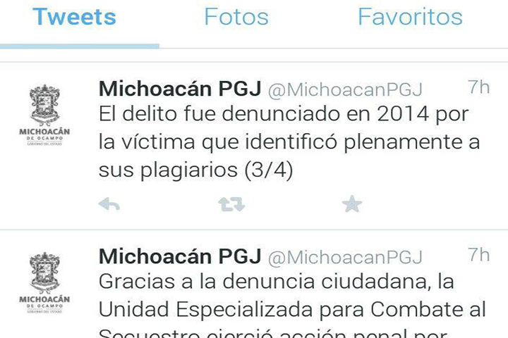 Al respecto, la institución encargada de procuración de justicia en la entidad divulgó: "@MichoacanPGJ detiene a dos ... Ver más...