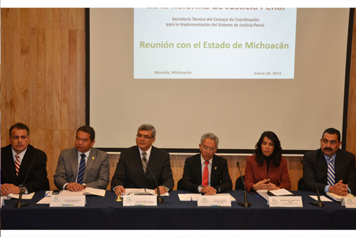 NOTICIAS 19/01/2015Se implementará el NSJP en Michoacán el 7 de marzoEl Consejo para el Nuevo Sistema de Justicia Penal en Michoacán, celebró este lunes la primer sesión ordinaria del año 2015 a la cual asistió el Gobernador, Salvador Jara Guerrero, y la Secretaria Técnica del Consejo de Coordinación para la Implementación del Sistema de Justicia Penal (SETEC), María de los Ángeles Fromow Rangel.