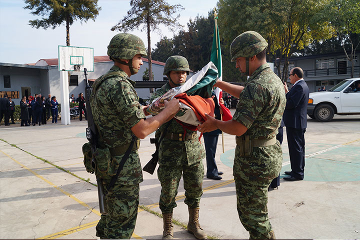 En el marco del protocolo militar para la reposición e incineración de la bandera mexicana, tal como lo marca el artículo 54 de la ley, sobre el Escudo, la Bandera y el Himno Nacional, personal castrense rec... Ver más...