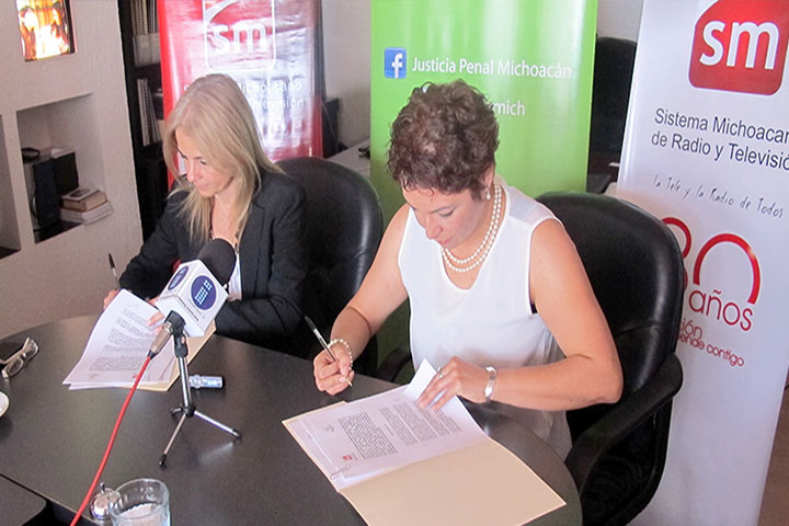 Con el objetivo de impulsar la difusión y dar seguimiento a los trabajos para la implementación del Sistema Acusatorio Adversarial y Oral, la Secretaría Ejecutiva del Consejo para el Nuevo Sistema de Justicia Penal en Michoacán y el Sistema Michoacano de Radio y Televisión, renovaron el convenio de colaboración interinstitucional.