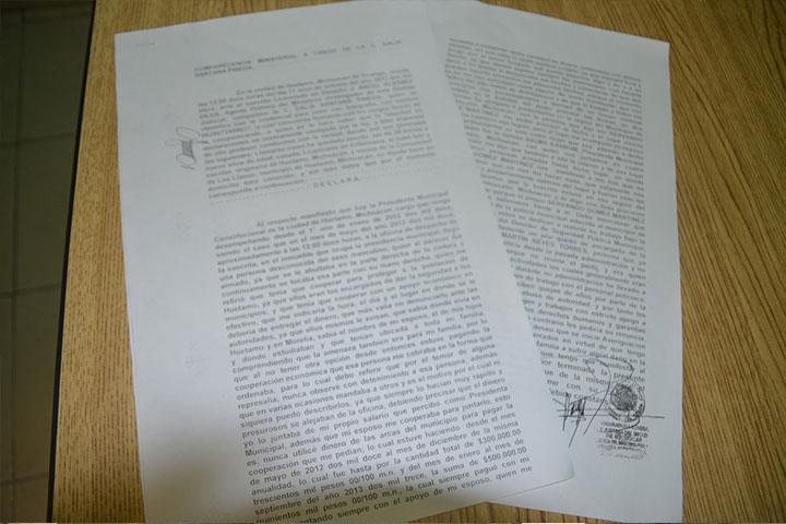 La presidenta municipal de esta localidad sí denunció ante la Procuraduría General de Justicia de Michoacán que era extorsionada por el crimen organizado, según quedó asentado en un documento oficial que obra en poder de este medio.