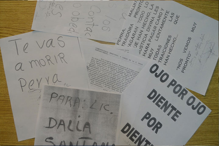 NOTICIAS 19/08/2014Alcaldesa de Huetamo denunció amenazas de muerte"Perra, maldita traidora, pronto pagarán todo lo que han hecho, la justicia divina les hará pagar caro y muy lentamente todas las traiciones que han hecho, nos vemos muy pronto, perra tienes los días contados por no obedecer órdenes, ojo por ojo diente por diente, te vas a morir perra, perra tienes los días contados, para lic. Dalia Santana Pineda".