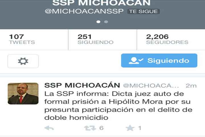 "La SSP informa: Dicta juez auto de formal prisión a Hipólito Mora por su presu... Ver más...