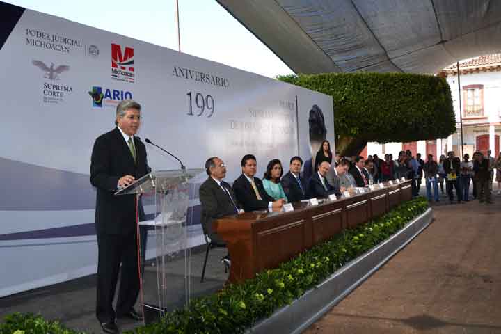 Se conmemoró el 199 Aniversario de la Instalación del Supremo Tribunal de Justicia de la Nación en Ario de Rosales, Michoacán en el que se hizo un compromiso fuerte para que jueces y autoridades hagan efectivos los derechos humanos al ser fieles la Constitución Política Mexicana ante que la ley al respetar éstas garantías individuales, aseguró el Coordinador de Magistrados