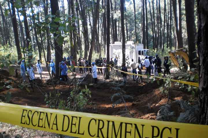 Diversas prendas de vestir, una pala, un pico, un cartucho percutido y otros objetos, fueron localizados al término de la jornada de recolección de indicios, en las huertas del Moral del municipio de Tingüindín, donde se decía que había enterrados al menos 20 personas en narco fosas, lo cual ha resultado negativo toda vez que únicamente se encontraron huesos en una mínima cantidad.