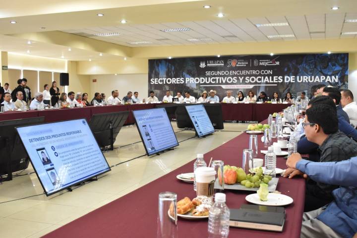 NOTICIAS 01/02/2025Expone Fiscalía General avances y resultados ante el Sector Productivo y Social de UruapanEn el marco del Segundo Encuentro con Sectores Productivos y Sociales de Uruapan, presidido por el Gobernador del estado, Alfredo Ramírez Bedolla, la Fiscalía General del Estado de Michoacán (FGE) expuso los avances y resultados obtenidos durante el 2024 en las tareas de persecución de delitos y procuración de justicia.