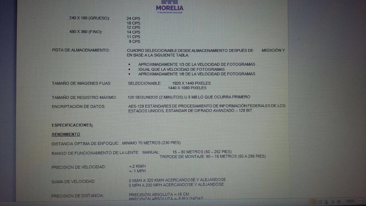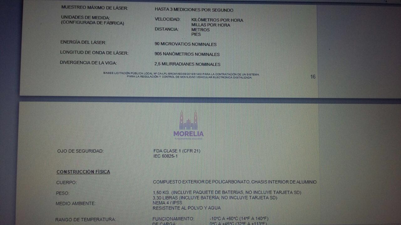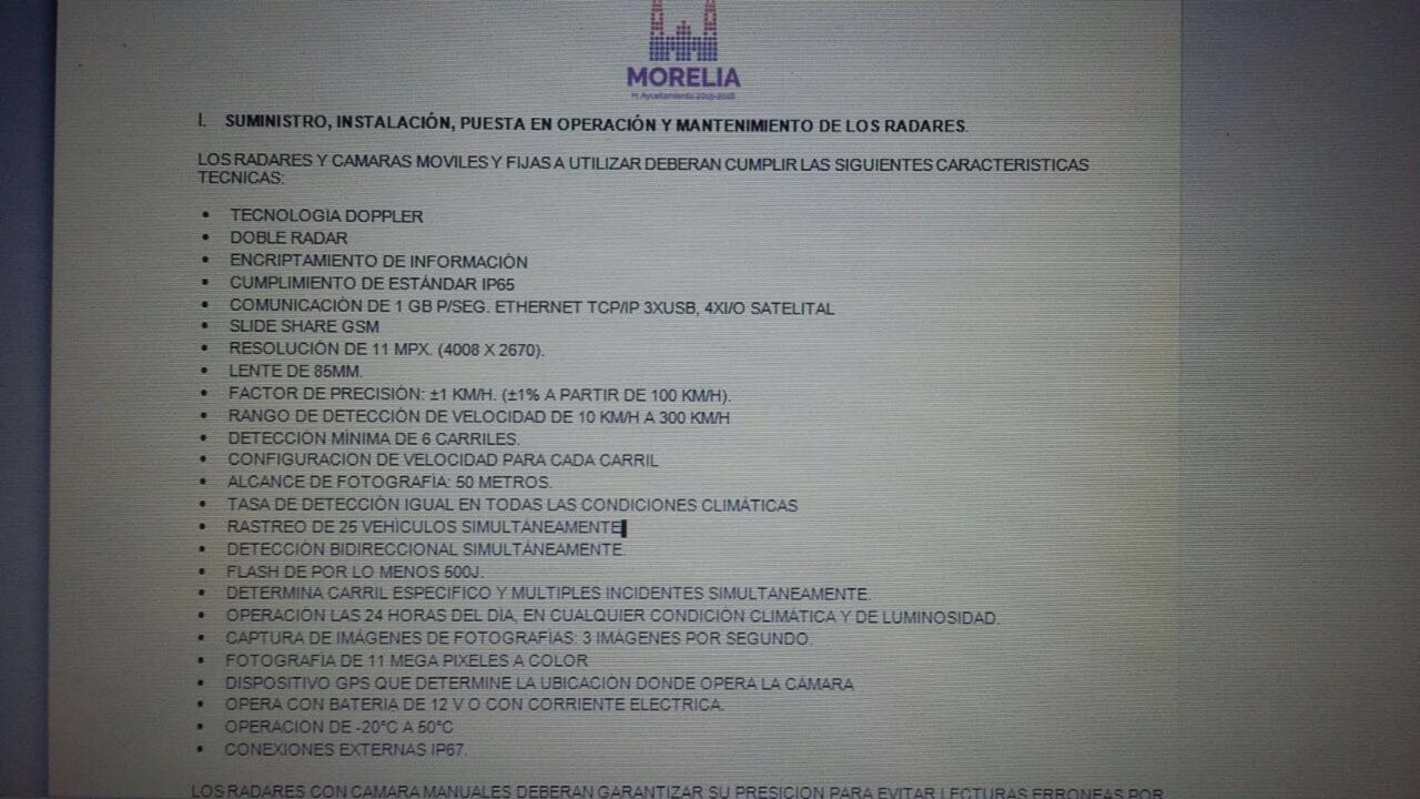 | Características de los radares y cámaras móviles que el ayuntamiento de Morelia pide a las empresas son exactos los que presentó Inteltrafico en el Anexo Técnico de la CDMX. |