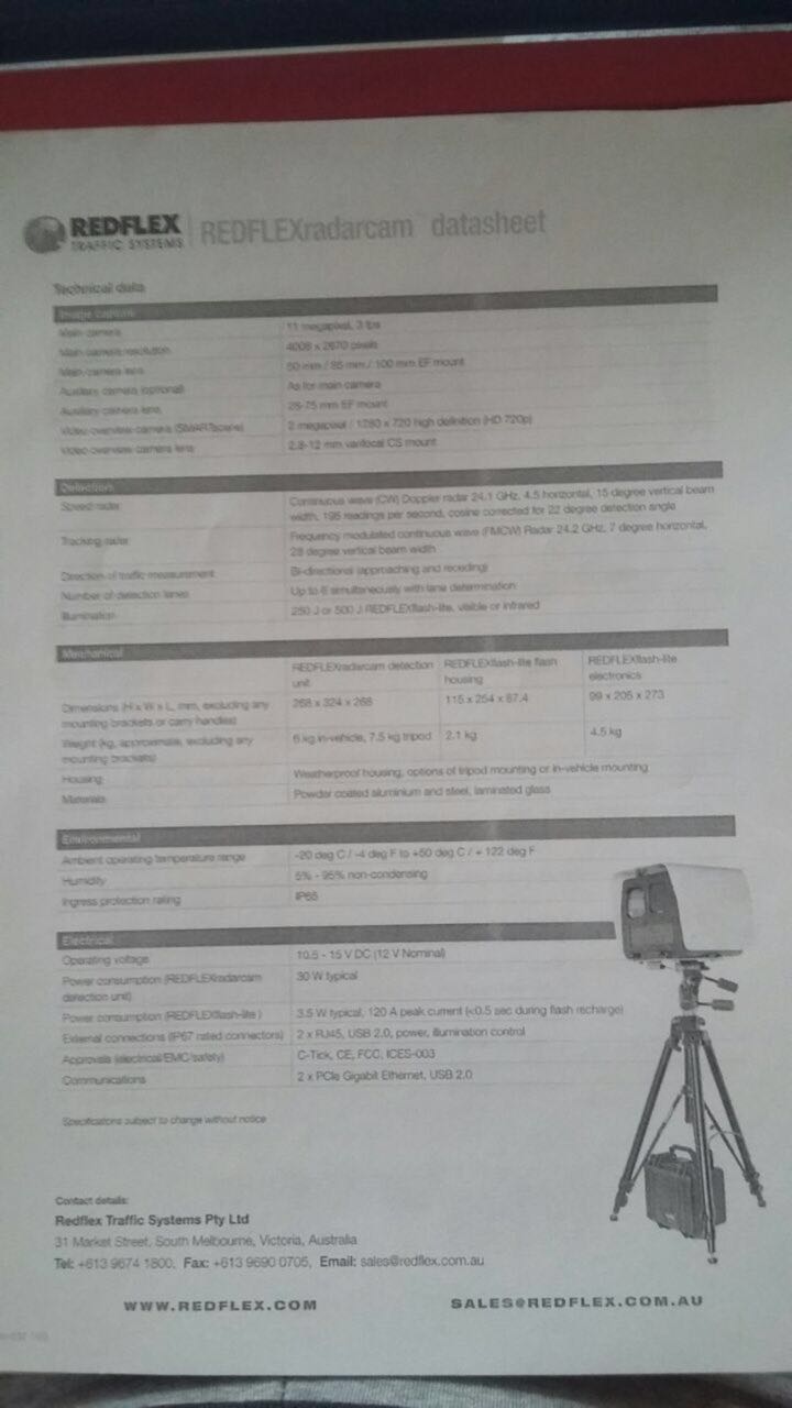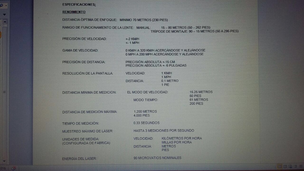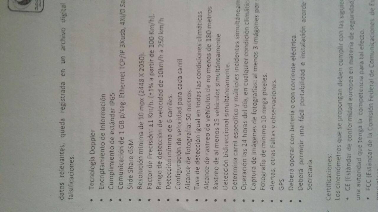 | Especificaciones técnicas de los equipos exactamente iguales las que se piden en las bases a las que tiene en su página web la empresa Redflex. |