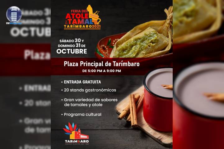 Tarímbaro está listo para recibir la primera Feria del Atole y del Tamal este sábado y domingo 30 y 31 de octubre de 2021 en la plaza principal. Las cocineras tarimbarenses prepararán sus mejores recetas de tamales y atoles con la finalidad de preservar la tradición cultural y gastronómica del municipio. En esta primera edición se ofertarán 20 distintos sabores de tamales que van desde los tradicionales de mole, rojo, verde, de ques...