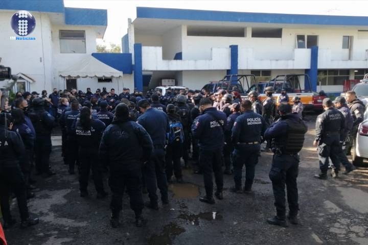 Policías municipales se manifiestan por mejoras salariales en Uruapan