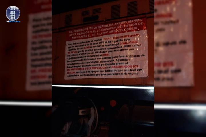 Narcomantas fueron colocadas este jueves por sujetos desconocidos en dos puntos diferentes de esta ciudad de Apatzingán, las mismas señalan a mandos militares de un supuesto involucramiento con grupos delincuenciales, de acuerdo con la información obtenida por esta agencia de noticias.