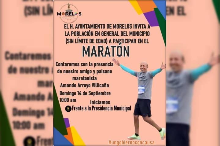 Con gran entusiasmo y en el marco de las celebraciones del mes patrio, el presidente municipal de Morelos, Julio César Conejo Alejos, anunció la realización del Maratón Patrio 2025, al cual se convoca a toda la población sin límite de edad a participar y ser parte de esta fiesta deportiva y comunitaria. El evento se llevará a cabo el domingo 14 de septiembre, a las 10:00 de la mañana, partiendo frente a la Presidencia Municipal, y cont...