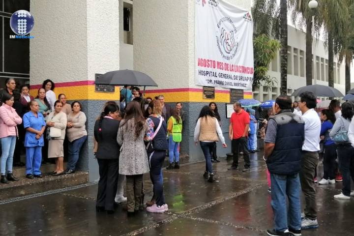 Con el propósito de fortalecer la cultura de la protección civil, y reducir los riesgos durante alguna contingencia, especialmente relacionada a sismos, personal del Hospital General de Uruapan "Dr. Pedro Daniel Martínez", se integró al Macro simulacro 2019, este 19 de septiembre, a las 10:00 horas, donde participaron los trabajadores de la salud y familiares de los pacientes.