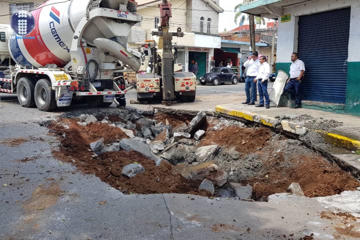 El camión color blanco, de la empresa Cemex y número económico CR 4779, circulaba de oriente a poniente sobre la calle Jalisco, y al llegar a la intersección con Michoacán, el piso se hundi... Ver más...