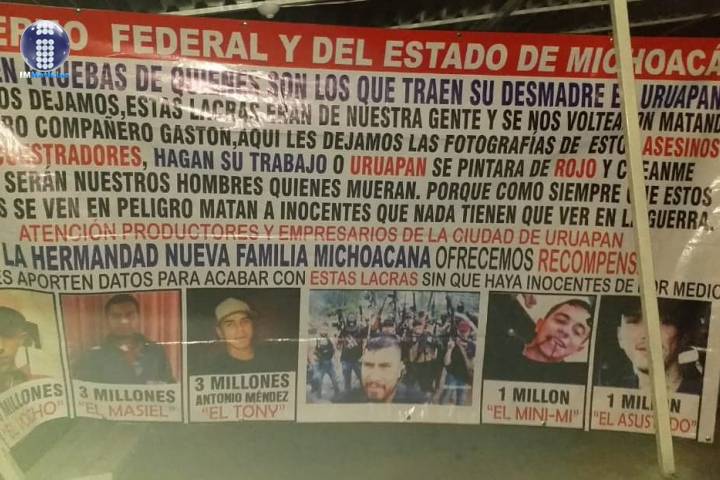 Dos narcomantas fueron dejadas este martes por integrantes del crimen organizado en diferentes puntos de esta ciudad de Uruapan. Los letreros versaban sobre la pugna que hay en esta región entre grupos delictivos rivales, de acuerdo con los datos proporcionados a este medio de comunicación por fuentes policiacas.