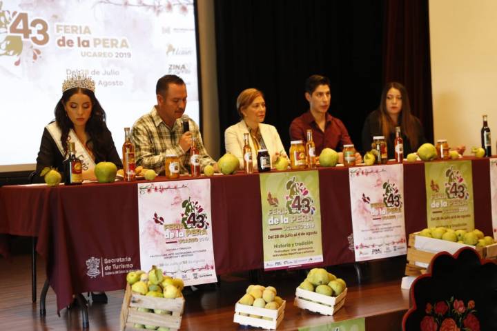 Del 28 de Julio al 4 de agosto, Ucareo realizará su tradicional feria de la Pera 2019, cuyo objetivo principal es la exposición y venta de frutas, conservas y licores de la región, informó en conferencia de prensa el presidente del Comité Organizador, Jesús Ayala Farfán. Ayala Farfán, comentó que la Feria tiene tradición de 43 años, y que en esta edición se espera recibir a alrededor de 8 mil personas, para quienes se tienen prepa...