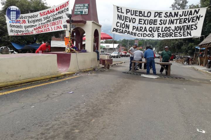 Por segundo día consecutivo, habitantes de la comunidad de Nuevo San Juan Parangaricutiro mantienen tomada la presidencia municipal y bloqueo en el acceso principal a la población, como medida de presión para que aparezcan los tres jóvenes que hace quince días desaparecieron.