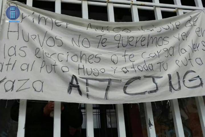 Este sábado aparecieron tres narcomantas colocadas en la Biblioteca Municipal en esta población, mismas que tenían mensajes de amenaza en contra de los aspirantes a la presidencia local, en los letreros también eran amagados funcionarios, ex funcionarios y el actual edil.