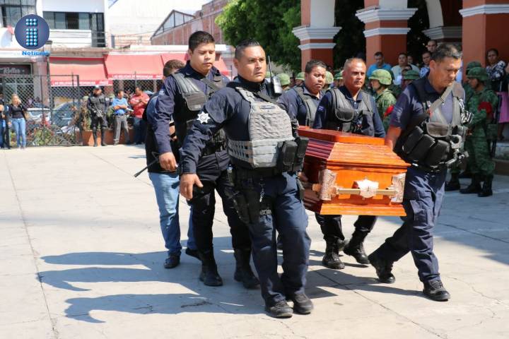 Autoridades civiles militares y policiacas fueron as encargadas de realizar el último adiós del oficial en un acto realizado en la explanada de la presidencia municipal, y estuvo encabezado por el alcalde de Apatzingán César Chávez Garibay.