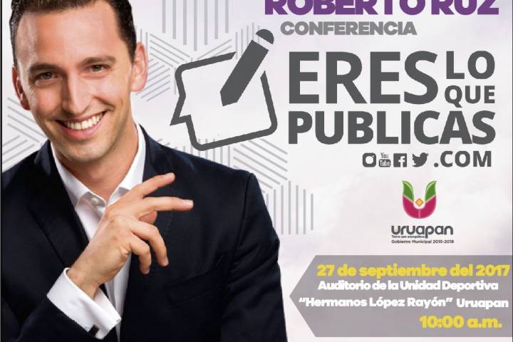 La Secretaría de Seguridad Pública (SSP), en coordinación con la Secretaría de Desarrollo Social y Humano, el Instituto de la Juventud Michoacana y el Ayuntamiento de Uruapan, invita a la conferencia para jóvenes "Eres lo que publicas", a efectuarse el próximo miércoles las 10:00 horas en el nuevo auditorio municipal de la unidad deportiva "Hermanos López Rayón", de Uruapan. Esta conferencia será dictada por Roberto Ruíz, Premio N...