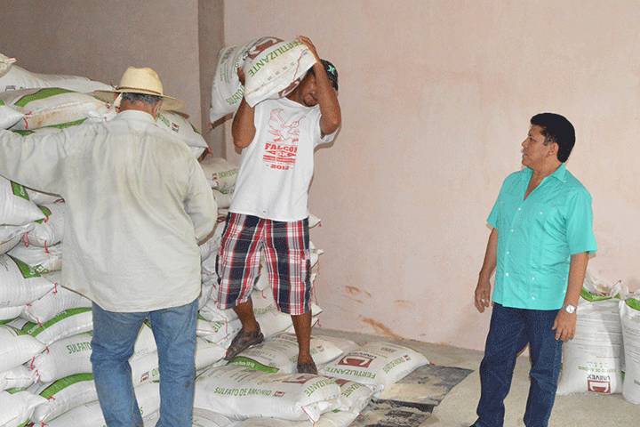 Entrega alcalde a campesinos fertilizante a bajo costo