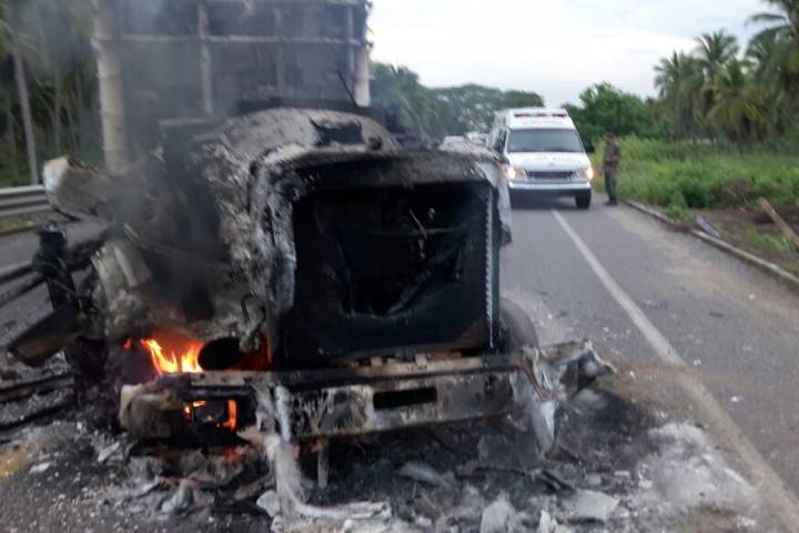La tarde noche de este domingo, desconocidos incineraron tres vehículos de carga sobre la carretera costera que comunica de este municipio de Lázaro Cárdenas hacia Aquila. Personal del Ejercito Mexicano, Policía Michoacán, Secretaria de Marina y Policía Federal se movilizaron en busca de los infractores y para liberar la vialidad.