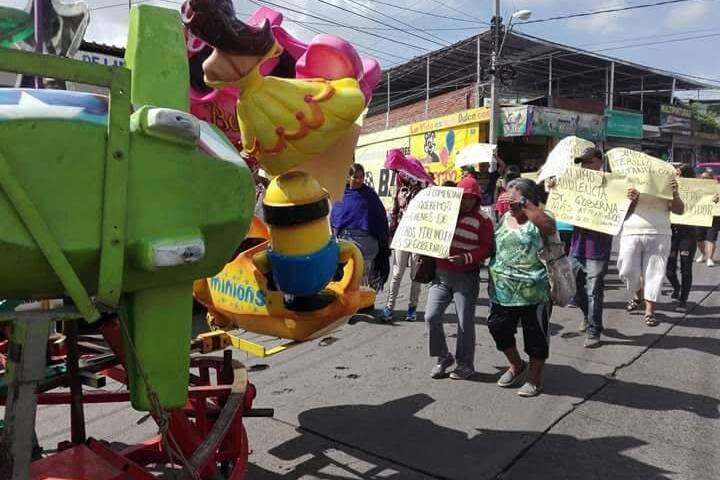 Integrantes de la asociación civil "Fray Juan de San Miguel de Juegos Mecánicos" realizaron una manifestación este miércoles para exigir justicia para un joven que fue baleado durante un asalto, persona que pertenece a dicha organización.