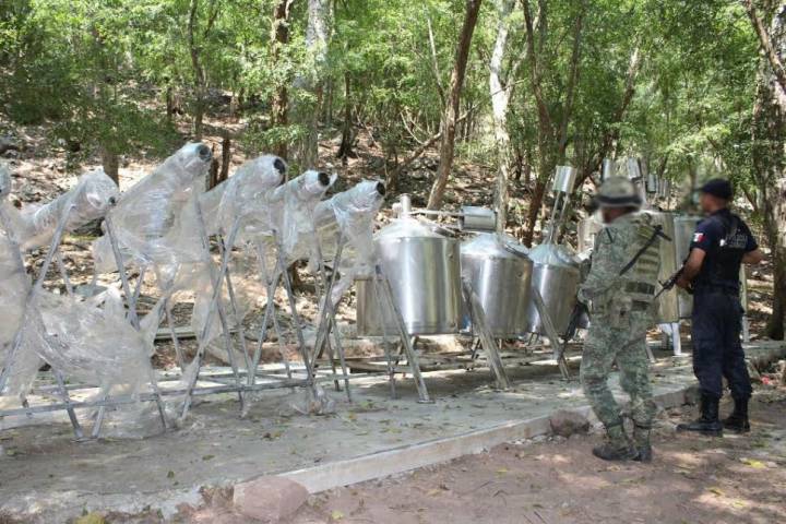 En un operativo conjunto, personal de la Secretaría de la Defensa Nacional (Sedena), a través del 82 Batallón de Infantería, Policía Michoacán y la Procuraduría General de la República (PGR), llevaron a cabo el aseguramiento y desmantelamiento de una narcococina para elaboración de droga sintética en esta demarcación de Aquila.